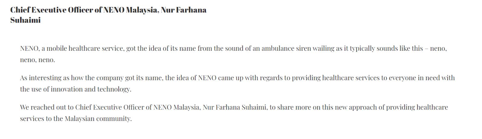 As interesting as how the company got its name, the idea of NENO came up with regards to providing healthcare services to everyone in need with the use of innovation and technology.