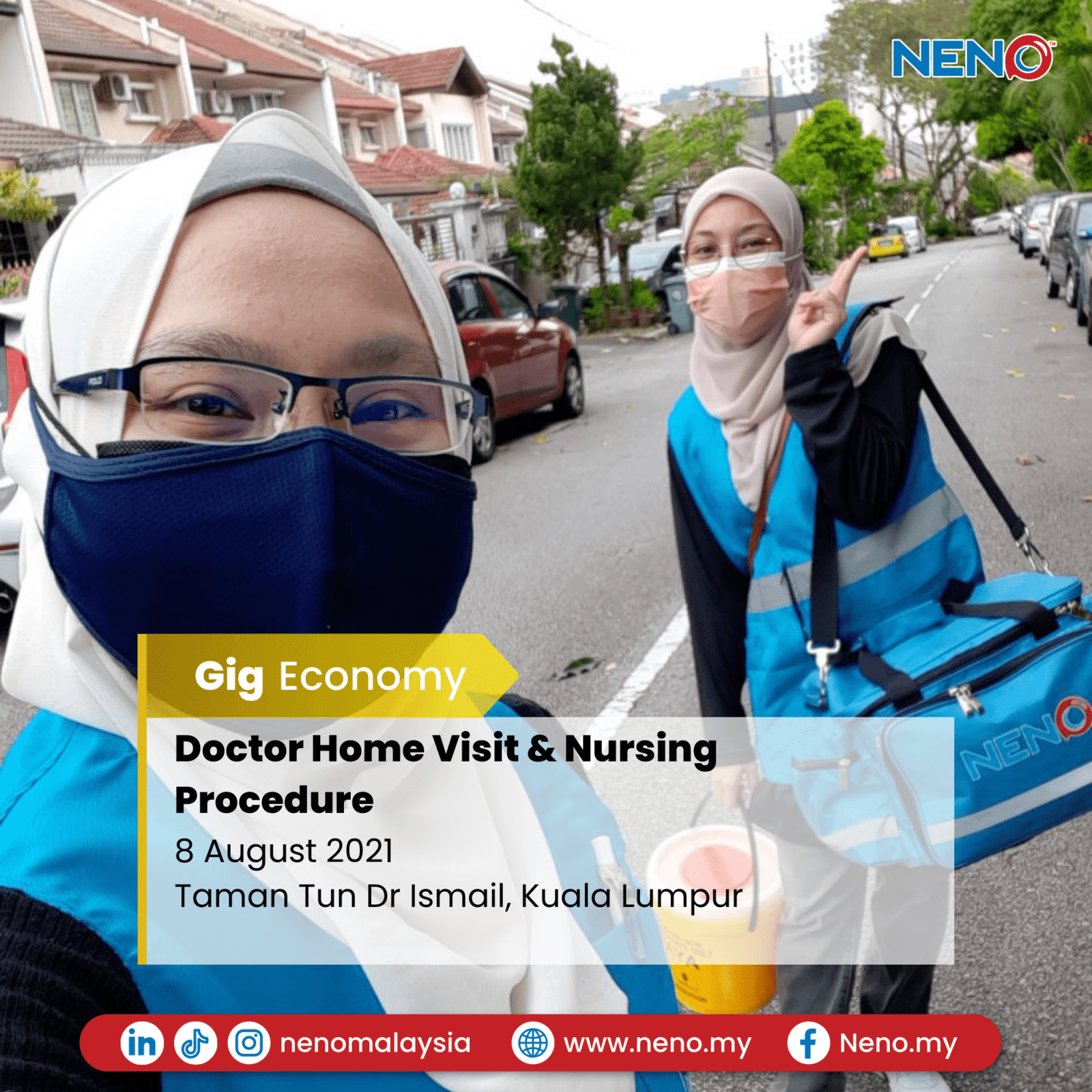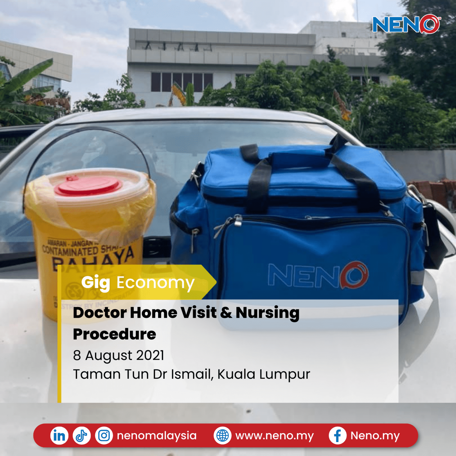 Nursing procedure and blood testing was done to an elderly patient for his health assessment, conducted by a gig doctor accompanied by Neno's team.